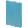 Ежедневник с твердой обложкой и тонированным обрезом. Выполнен из материала Latte, голубой, дополнен ляссе в цвет обложки.
