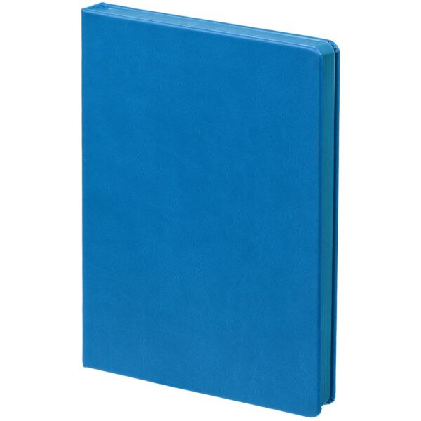 Ежедневник с твердой обложкой и тонированным обрезом. Выполнен из материала Latte, ярко-синий, дополнен ляссе в цвет обложки.