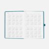 Ежедневник с твердой обложкой без поролона, выполнен из материала Soft Touch, цвет морской волны II, дополнен резинкой шириной 1 см, петлей-резинкой для ручки, капталом и ляссе темно-бирюзового цвета.