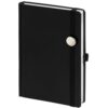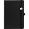 Ежедневник с твердой обложкой без поролона, выполнен из материала Soft Touch, черный АА, дополнен резинкой шириной 1 см, петлей-резинкой для ручки, капталом и ляссе черного цвета.