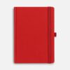 Ежедневник с твердой обложкой без поролона, выполнен из материала Soft Touch Ultra, красный РР, дополнен резинкой шириной 1 см, петлей-резинкой для ручки, капталом и ляссе красного цвета.