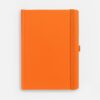 Ежедневник с твердой обложкой без поролона, выполнен из материала Soft Touch, оранжевый ОО, дополнен резинкой шириной 1 см, петлей-резинкой для ручки, капталом и ляссе оранжевого цвета.