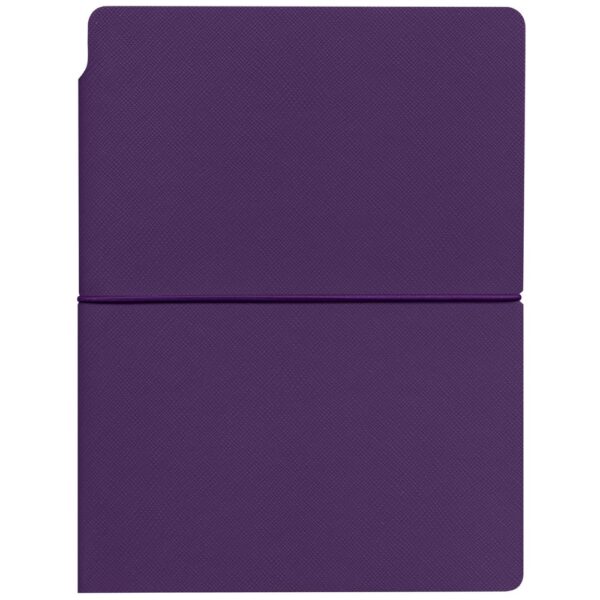 Ежедневник с гибкой обложкой выполнена из материала Nice Touch, фиолетовый и Latte, фиолетовыйl (внутренняя часть обложки), дополнен горизонтальной резинкой в цвет обложки. Внутри корешка — специальное место для крепления ручки размером до 15х1 см.