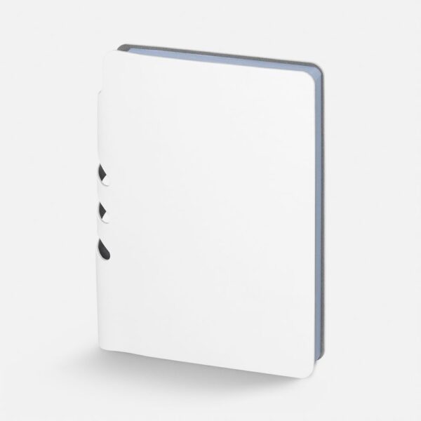 Ежедневник с гибкой обложкой выполнен из материала Soft Touch, белый BB и серого Latte (внутренняя часть обложки). Внутри корешка — специальное место для крепления ручки размером до 15х0,9 см.
