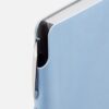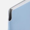 Ежедневник с гибкой обложкой выполнен из материала Soft Touch, голубой JJ и серого Latte (внутренняя часть обложки). Внутри корешка — специальное место для крепления ручки размером до 15х0,9 см.