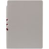 Гибкая обложка выполнена из материала Velour Melange, серый СС и Latte, красный PP (внутренняя часть обложки). Внутри корешка — специальное место для крепления ручки размером до 15х0,9 см.