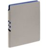 Гибкая обложка выполнена из материала Velour Melange, серый СС и Latte, синий НН (внутренняя часть обложки). Внутри корешка — специальное место для крепления ручки размером до 15х0,9 см.