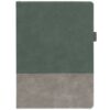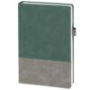 Ежедневник с твердой обложкой, без поролона, со сшивкой материалов Nubuck Touch, серый СС, и Nubuck Touch зеленый FF, дополнен двойным ляссе и петлей-резинкой для ручки.
