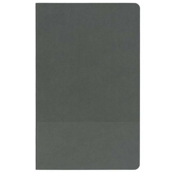 Ежедневник с гибкой обложкой, выполнен из материала Canyon, темно-серый ЕЕ, дополнен ляссе в цвет обложки. Блинтовое тиснение на обложке создает эффект вязаного полотна.