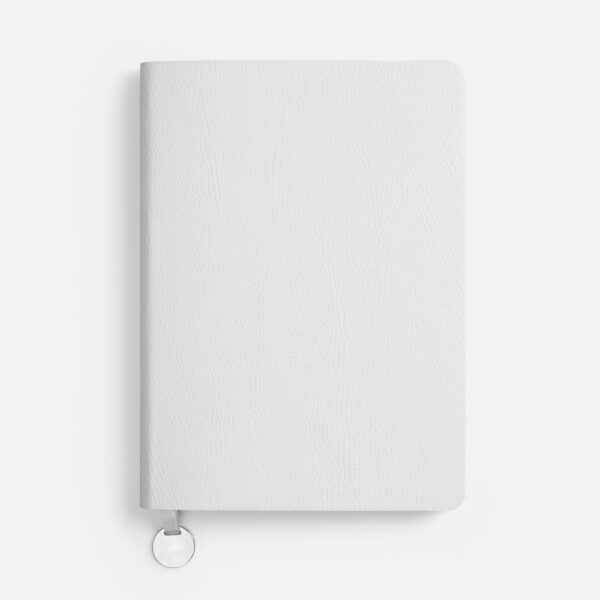 Ежедневник с гибкой обложкой, выполнен из материала Prestige, белый BB, дополнен ляссе в цвет обложки с металлическим шильдом.