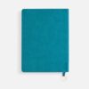 Ежедневник с гибкой обложкой, выполнен из материал La Fite, цвет морской волны II, дополнен ляссе в цвет обложки с металлическим шильдом.