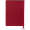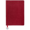 Ежедневник с гибкой обложкой, выполнен из материал La Fite, красный РР, дополнен ляссе в цвет обложки с металлическим шильдом.