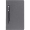 Ежедневник в твердой обложке, выполненной из материала Soft Touch Pearl, серый СС, дополнен цветным ляссе и магнитом, удерживающим ручку.