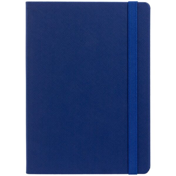 Ежедневник с твердой обложкой выполнен из материала Nice Touch, синий НН, и дополнен резинкой шириной 1 см и ляссе синего цвета.