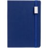 Ежедневник с полутвердой обложкой выполнен из материала Nice Touch, синий НН, и дополнен резинкой шириной 1 см с металлическим шильдом и ляссе синего цвета.