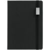 Ежедневник с твердой обложкой, выполнен из материала Latte, черный АА, обрез черного цвета, дополнен ляссе черного цвета и резинкой с металлическим шильдом.