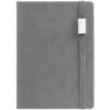 Ежедневник с твердой обложкой, выполнен из материала Latte, серый СС, обрез серого цвета, дополнен ляссе серого цвета и резинкой с металлическим шильдом.