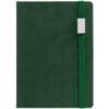 Ежедневник с твердой обложкой, выполнен из материала Latte, зеленый FF, обрез зеленого цвета, дополнен ляссе зеленого цвета и резинкой с металлическим шильдом.