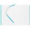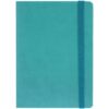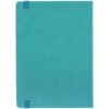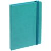 Ежедневник с твердой обложкой, выполнен из материала Latte, цвет морской волны II, обрез бирюзового цвета, дополнен резинкой и ляссе бирюзового цвета.