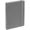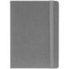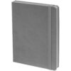 Ежедневник с твердой обложкой, выполнен из материала Latte, серый СС, обрез серого цвета, дополнен резинкой и ляссе серого цвета.