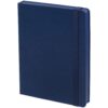 Ежедневник с твердой обложкой, выполнен из материала Latte, темно-синий ХХ, обрез темно-синего цвета, дополнен резинкой и ляссе темно-синего цвета.