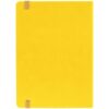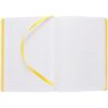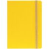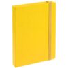 Ежедневник с твердой обложкой, выполнен из материала Latte, желтый КК, обрез зеленого цвета, дополнен резинкой и ляссе желтого цвета.