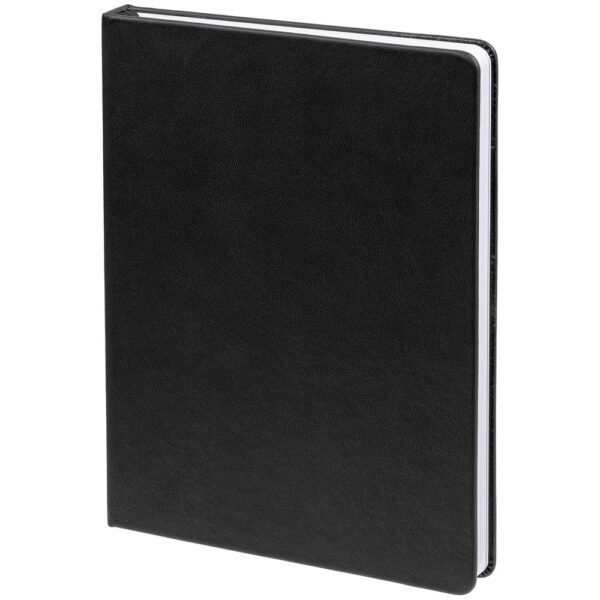 Ежедневник с твердой обложкой. Выполнен из материала Latte, черный, дополнен ляссе в цвет обложки.