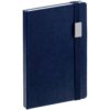 Ежедневник с твердой обложкой, выполнен из материала LaFite, темно-синий ХХ, дополнен резинкой с металлическим прямоугольным шильдом и ляссе в цвет обложки.