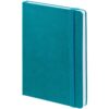Ежедневник с твердой обложкой, выполнен из материала LaFite, цвет морской волны II, дополнен резинкой и ляссе в цвет обложки.
