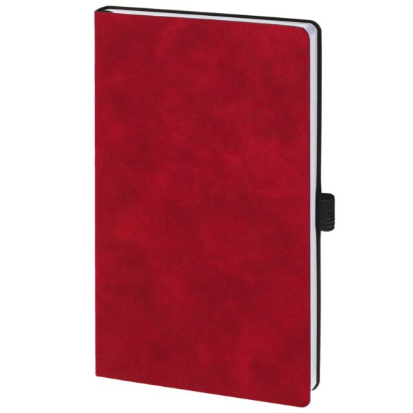 Ежедневник с гибкой обложкой, выполнен из материала Nubuck Touch, красный РР, дополнен ляссе и петлей-резинкой для ручки черного цвета.
