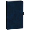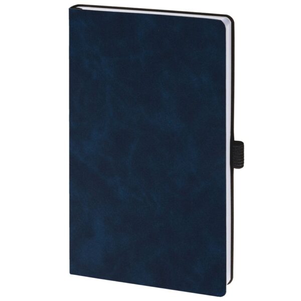 Ежедневник с гибкой обложкой, выполнен из материала Nubuck Touch, темно-синий XX, дополнен ляссе и петлей-резинкой для ручки черного цвета.
