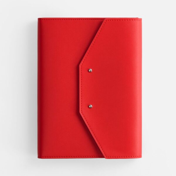 Ежедневник-органайзер в мягком переплете, формат А5+, с карманами для визиток и документов, петлей для ручки. Дополнен ляссе и капталом в цвет обложки. Клапан с прорезями застегивается на кобурные металлические кнопки.