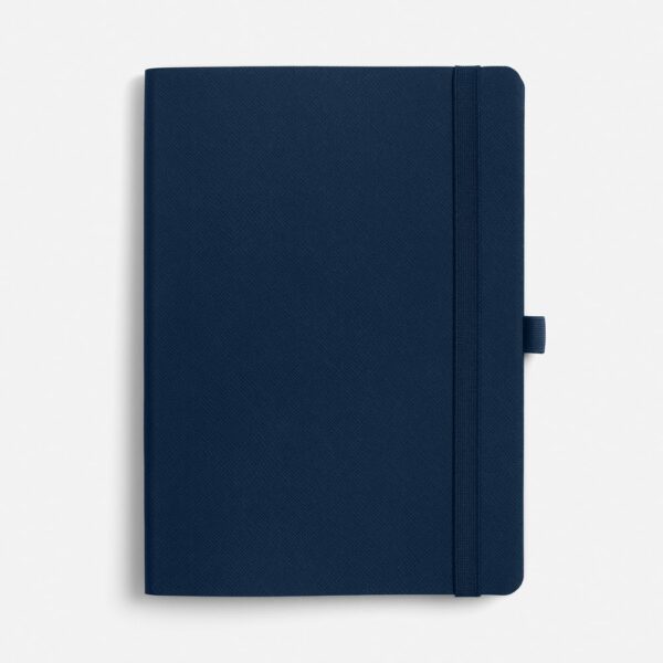 Ежедневник с гибкой обложкой, выполнен из материала Nice Touch, темно-синий ХХ, дополнен цветными ляссе и петлей-резинкой для ручки.