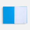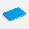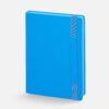 Ежедневник с твердой обложкой, выполнен из материала Nice Touch, голубой JJ, дополнен резинкой с шильдой из материала Soft Touch Ultra и ляссе в цвет обложки.