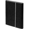 Ежедневник с гибкой обложкой, клапаном на магните и металлической отделкой клапана. Выполнен из материала Petrus, черный АА, дополнен серым ляссе.