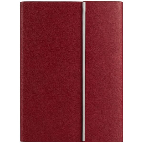 Ежедневник с гибкой обложкой, клапаном на магните и металлической отделкой клапана. Выполнен из материала Petrus, красный РР, дополнен серым ляссе.