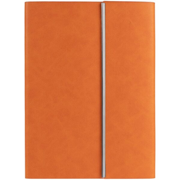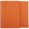 Ежедневник с гибкой обложкой, клапаном на магните и металлической отделкой клапана. Выполнен из материала Petrus, оранжевый ОО, дополнен серым ляссе.