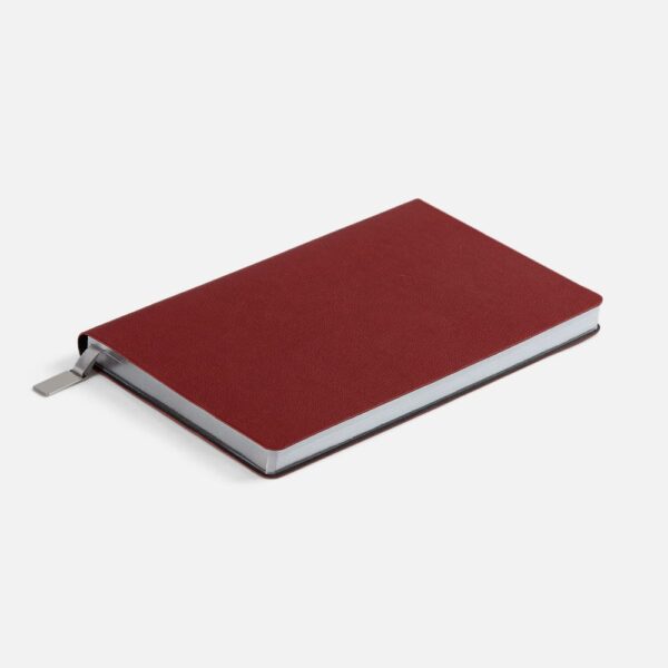 Ежедневник с гибкой обложкой, выполнен из материала Petrus, красный РР, дополнен серым ляссе с металлическим шильдиком.