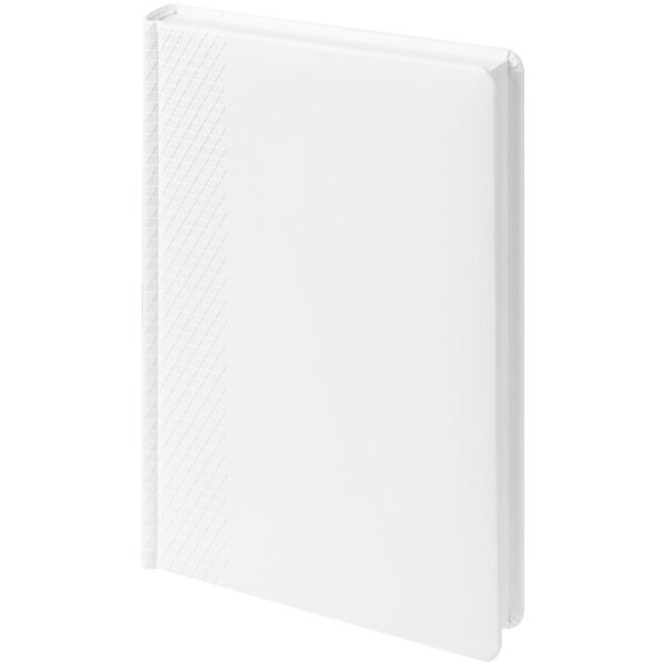 Ежедневник с твердой обложкой, выполнен из материала Waltz, белый ВВ, дополнен ляссе в цвет материала.