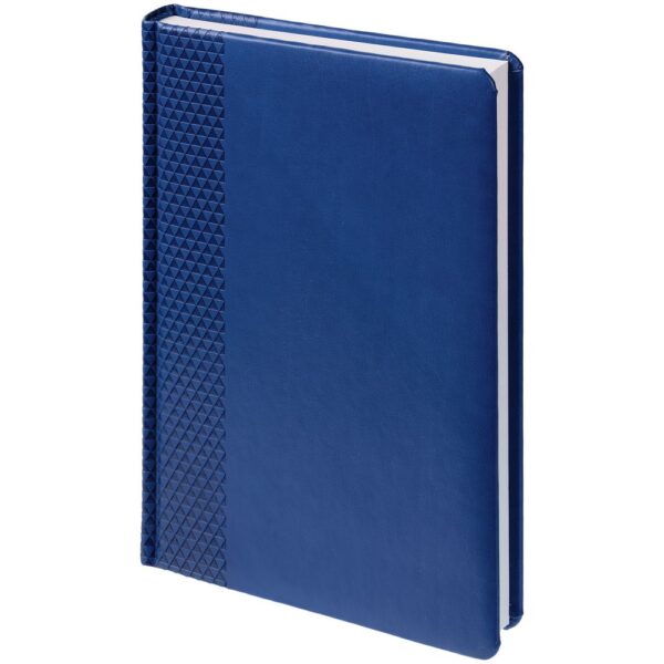 Ежедневник с твердой обложкой, выполнен из материала Waltz, синий НН, дополнен ляссе в цвет материала.
