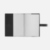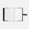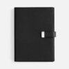 Ежедневник в мягком переплете со съемной обложкой, дополнен застежкой-хлястиком с металлическим шильдом на кнопке, двойным ляссе и капталом.