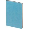 Ежедневник с гибкой обложкой, выполнен из материала Latte, голубой, дополнен ляссе в цвет обложки.