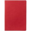 Ежедневник с гибкой обложкой, выполнен из материала Latte, красный, дополнен ляссе в цвет обложки.