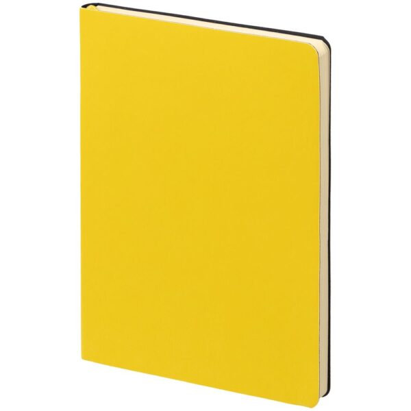 Ежедневник с гибкой обложкой, выполнен из материала Latte, желтый, дополнен ляссе в цвет обложки.