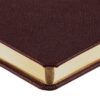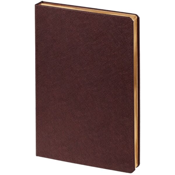 Ежедневник с твердой обложкой и золотистым обрезом, выполнен из материала Saffian, коричневый, дополнен ляссе в цвет обложки.