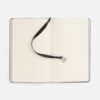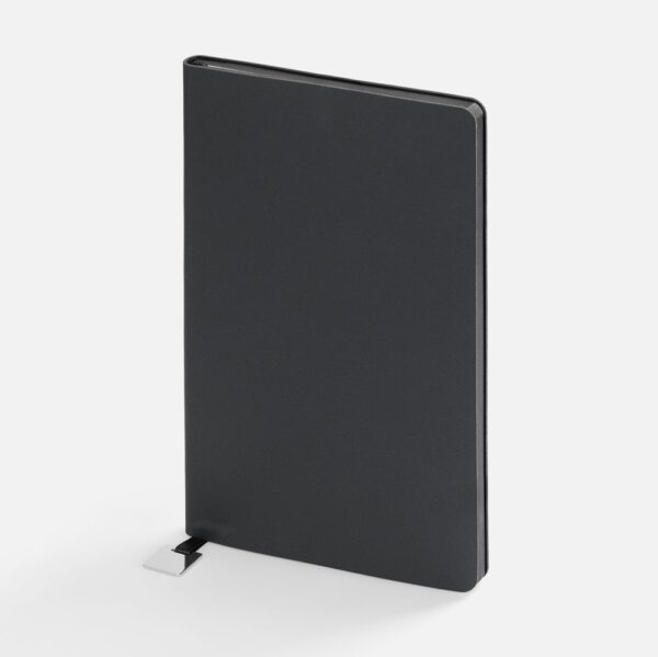 Ежедневник с гибкой обложкой, выполнен из материалов Soft Touch Pearl, черный АА, и Latte, черный (внутренняя часть обложки), дополнен ляссе в цвет обложки с металлическим шильдиком.