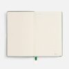 Ежедневник с гибкой обложкой, выполнен из материалов Soft Touch Ultra, зеленый FF, и Latte, зеленй (внутренняя часть обложки), дополнен ляссе в цвет обложки с металлическим шильдиком.