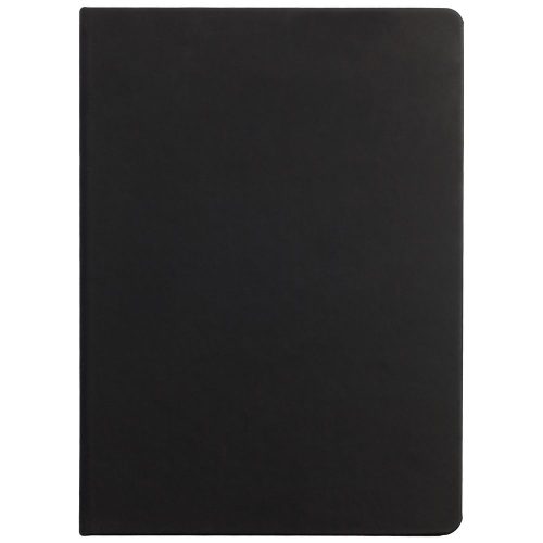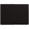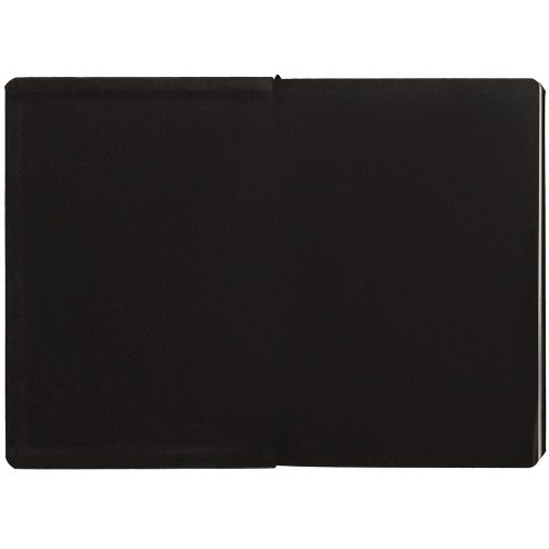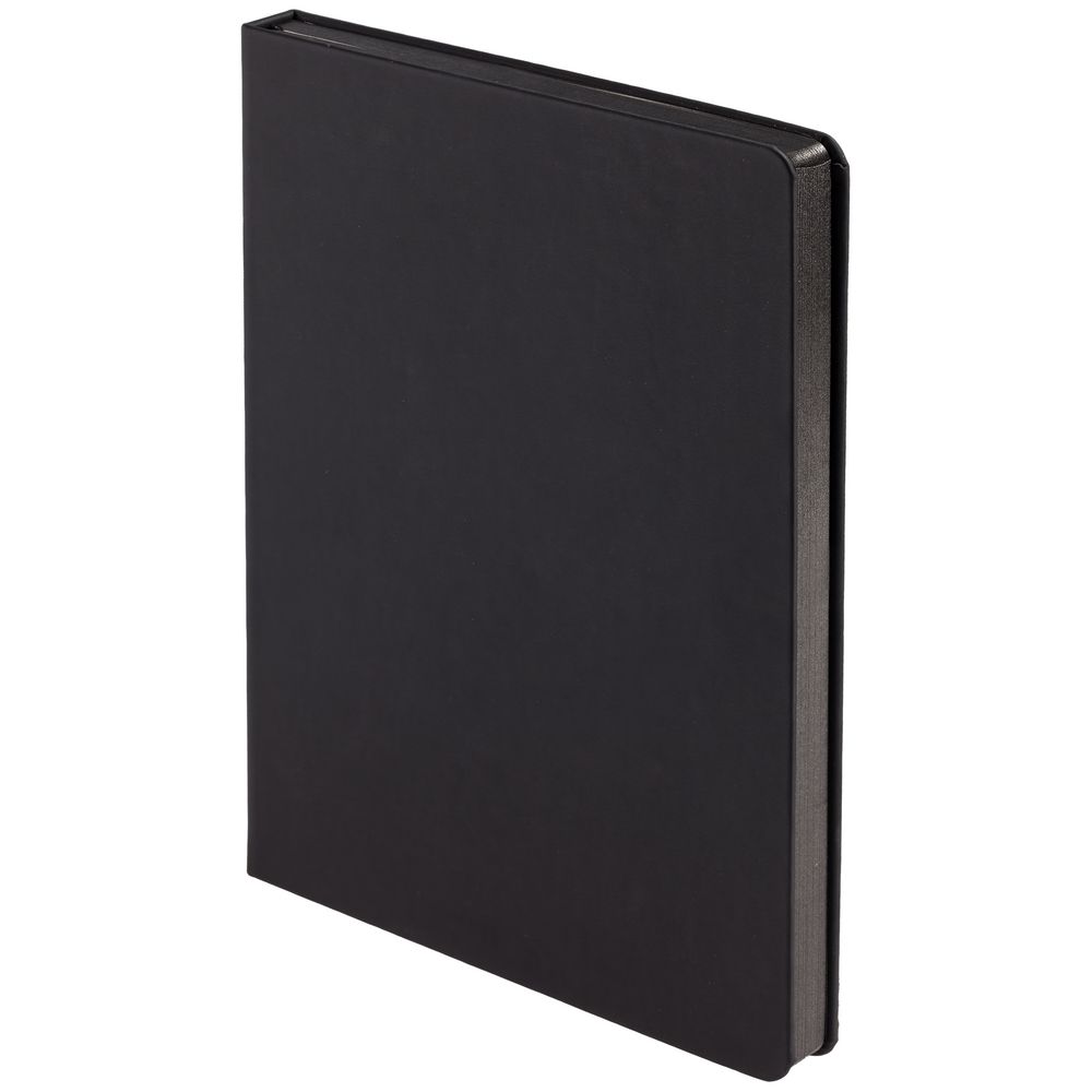 Ежедневник с твердой обложкой и тонированным обрезом, выполнен из материала Soft Touch, черный АА, дополнен ляссе в цвет обложки.