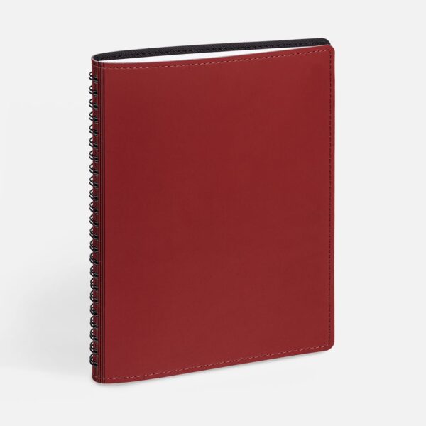 Ежедневник с гибкой обложкой, выполнен из материалов Soft Touch, красный РР и Nice Touch, черный АА.