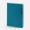 Ежедневник с гибкой обложкой из материала Soft Touch, цвет морской волны II и Latte, морская волна (внутренний материал), дополнен петелькой для ручки из покровного материала, капталом, ляссе и закрашенным срезом обложки в цвет материала.